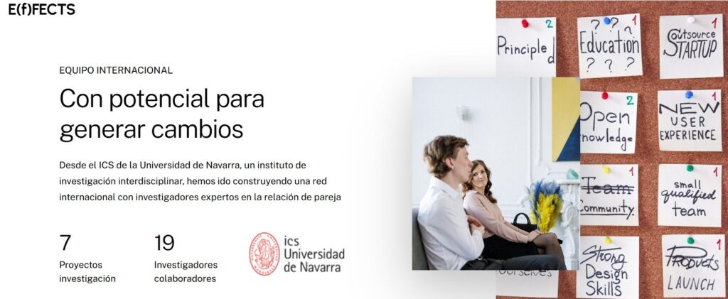 El proyecto E(f)FECTS (Emotionally Focused Couples Therapy in Spanish) es una investigación pionera en terapia de pareja en idioma español, centrada en la Terapia Focalizada en las Emociones (TFE) y su eficacia en contextos hispanohablantes. Este estudio constituye el primer ensayo clínico aleatorizado de TFE realizado específicamente para parejas de habla española, con el objetivo de aportar evidencia científica sólida a un modelo terapéutico con amplio respaldo internacional. (effects.es)
